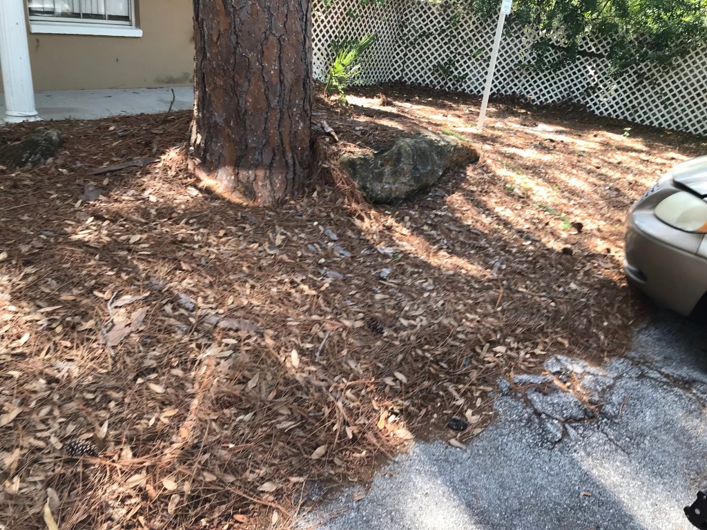So take a look at the next set of photos. This is years of pine needles piling up and our buggy house and manor house look like shit