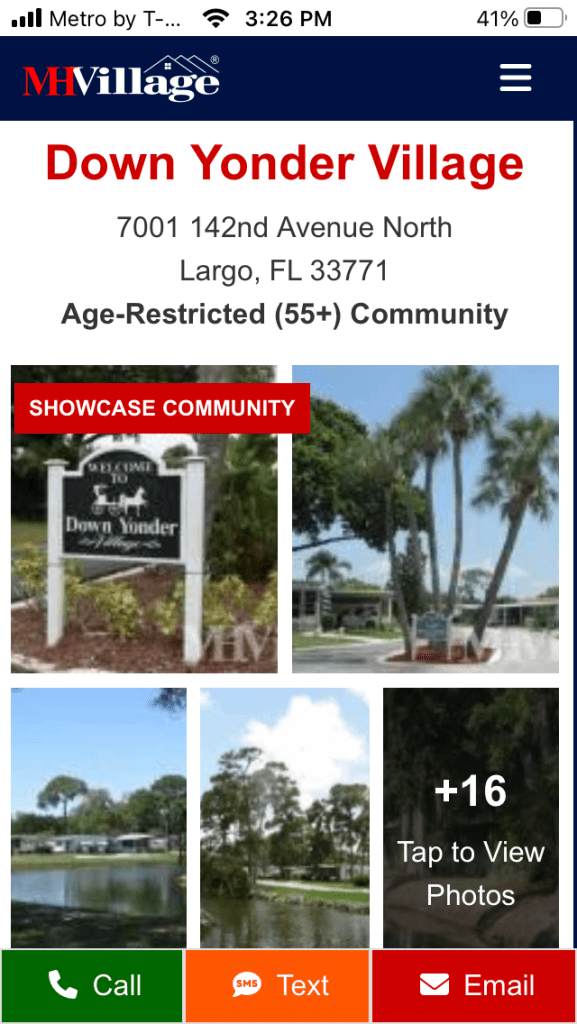 Below is a list of 55+ mobil home parks within a 40 mile radius of Largo Florida that MHvillage and ELS own. Pick one out anyone and call the office and ask questions like how much will my rent go up after my purchase or visit the mobil home park and ask a resident about the park and its management. I guarantee you will hear the same issues from any of the mobil home parks you choose GUARANTEED. I live in Down Yonder in Largo who recently changed their advertising to say age qualified 55+ instead of just 55+. It says showcase community. Its not. Nothing is being done in any of ELS, MHvillage mobil home parks as far as infrastructure work or any capital improvements whatsoever. Pick a park , any mobil home park in the MHvillage listing below and I Guarantee you wont find one mobil home park thats had any capital improvements at all in years. This is what you will get if you purchase a home in a ELS, MHvillage property