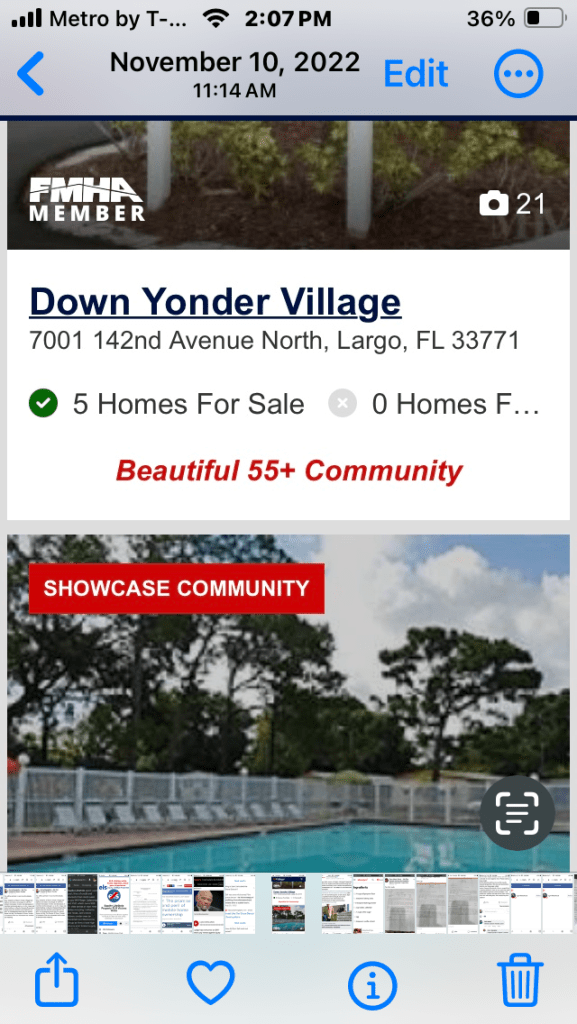 The sign at the entrance said age qualified I shit you not and below is the photo I was sent from the realtor and what I saw myself when searching online for a 55 + mobile home park in Florida.